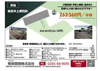 熊荣開発株式会社为您在饭田市及爱知县等地寻找土地和房产!